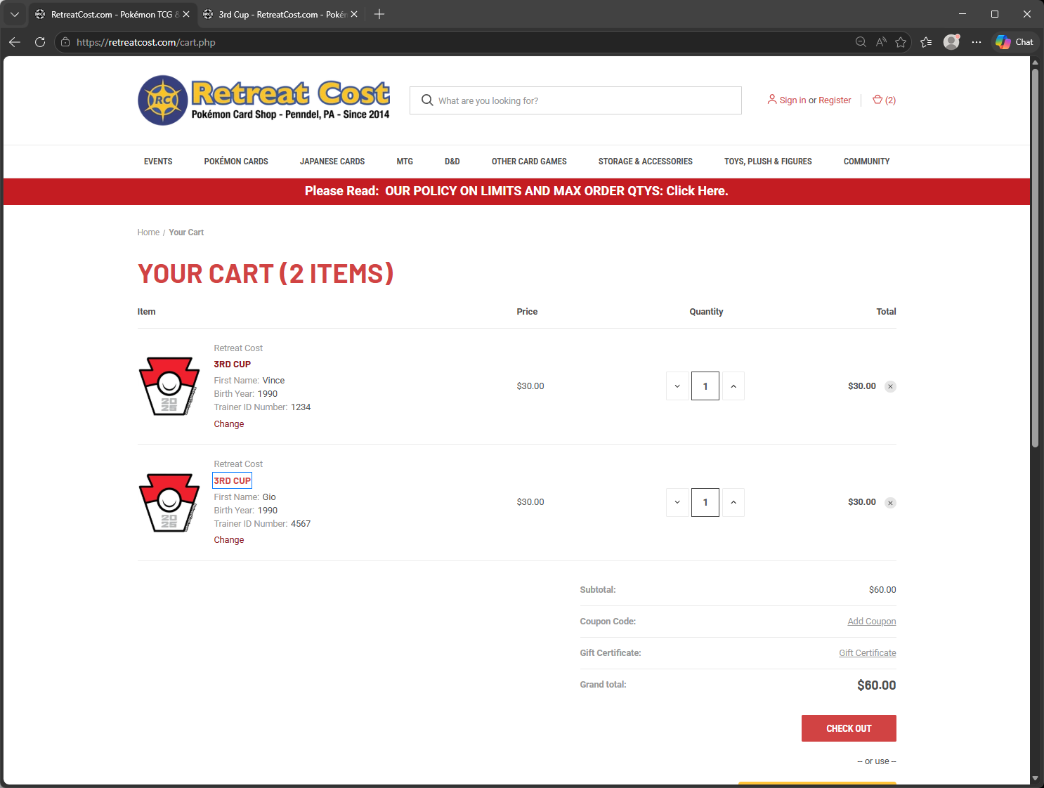 If you're looking to sign up for one of our /events/, and want to pay for two entries at the same time, you can do so!